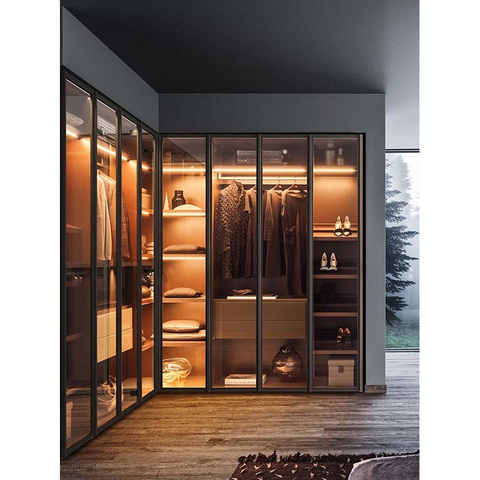 Top Pick Wardrobe Furniture with Plywood and Glass Door for Villa Bedroom Cupboard Cabinet