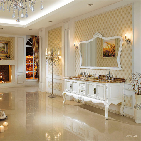 European Style Waterproof Bathroom Mirror Cabinet 48 Inch Wood Double Sink Bathroom Vanity Set with Sink